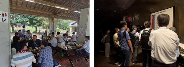 総会後はマイントピア別子内のバーベキューハウスあかがねの里にて懇親会を楽しんだ後、観光ガイド付きの坑道見学ツアーで江戸時代の採鉱の様子を再現した観光坑道を見学しました。