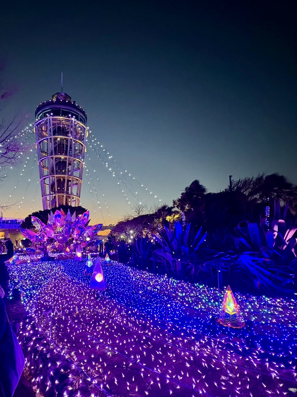 江ノ島の灯台、シーキャンドルです。湘南の宝石とうたっているだけに、素敵なイルミネーションでした。関東三大イルミネーションだそうです。