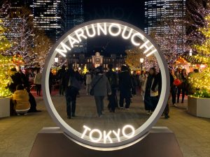 東京ミッドタウン日比谷のイルミネーションです。日々多くの人で賑わっています。