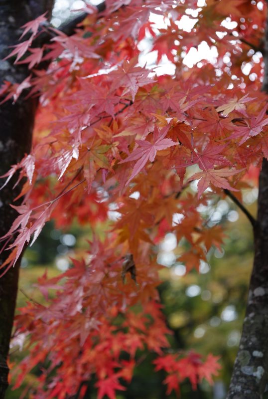 撮影した10月末はまだ色付き始めでしたが、よく見てまわると一際紅葉の進んだ木がありました。軽井沢雲場池で撮影。