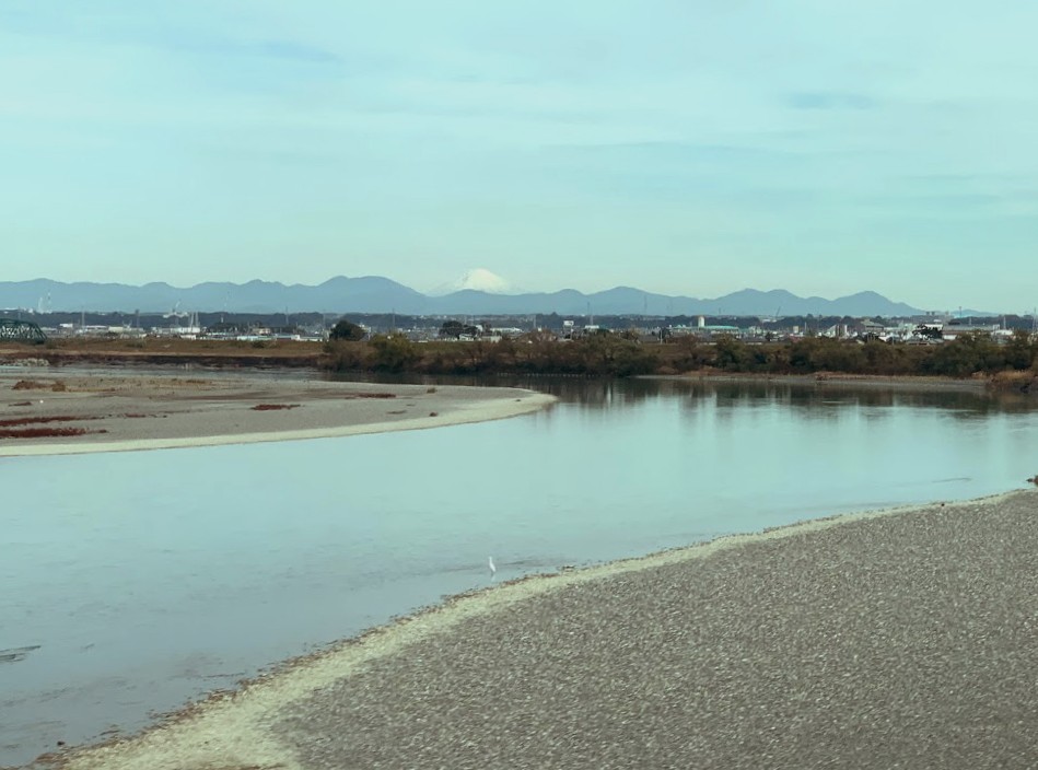 東京行きの新幹線。浜松駅を過ぎ、天竜川の鉄橋に差し掛かると、不意に建物が消えて広い河床が広がる。 遠く左手の山並みに、雪を頂いた富士山が「ぴょこんと」顔を覗かせた。 視線を下ろせば、広々とした水辺に遊ぶ優雅な白鷺。