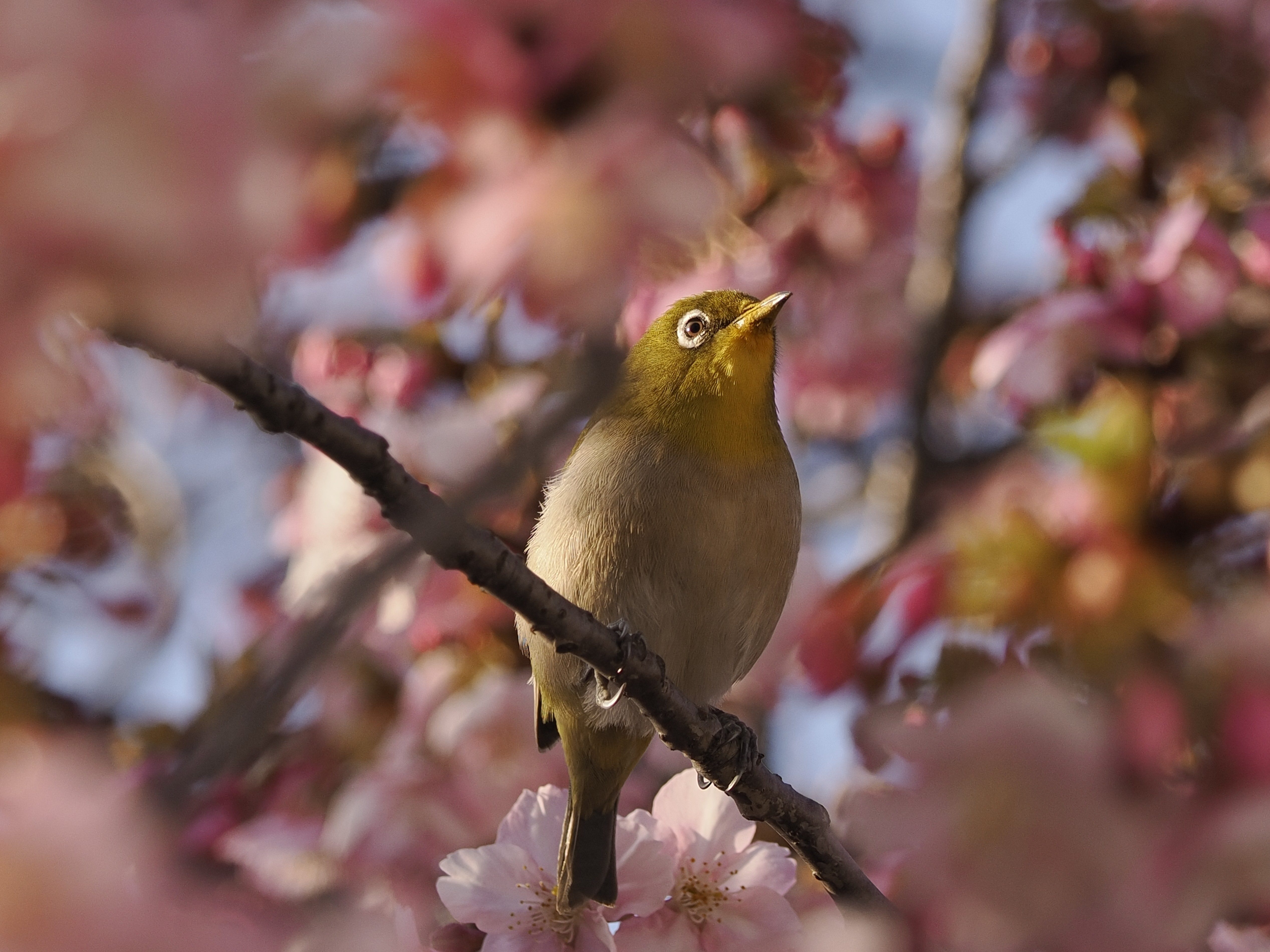 河津桜に今年も目白がやってきた