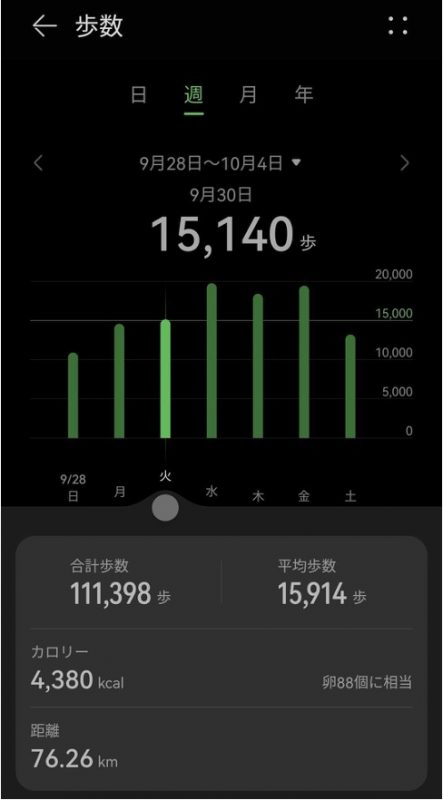 【ロマンチック街道】 ・参加距離 : 歩数:111,398 又は距離:76.26Km ・期間 : 2025年9月28日から7日間 ・コメント等:健康のため歩いています!
