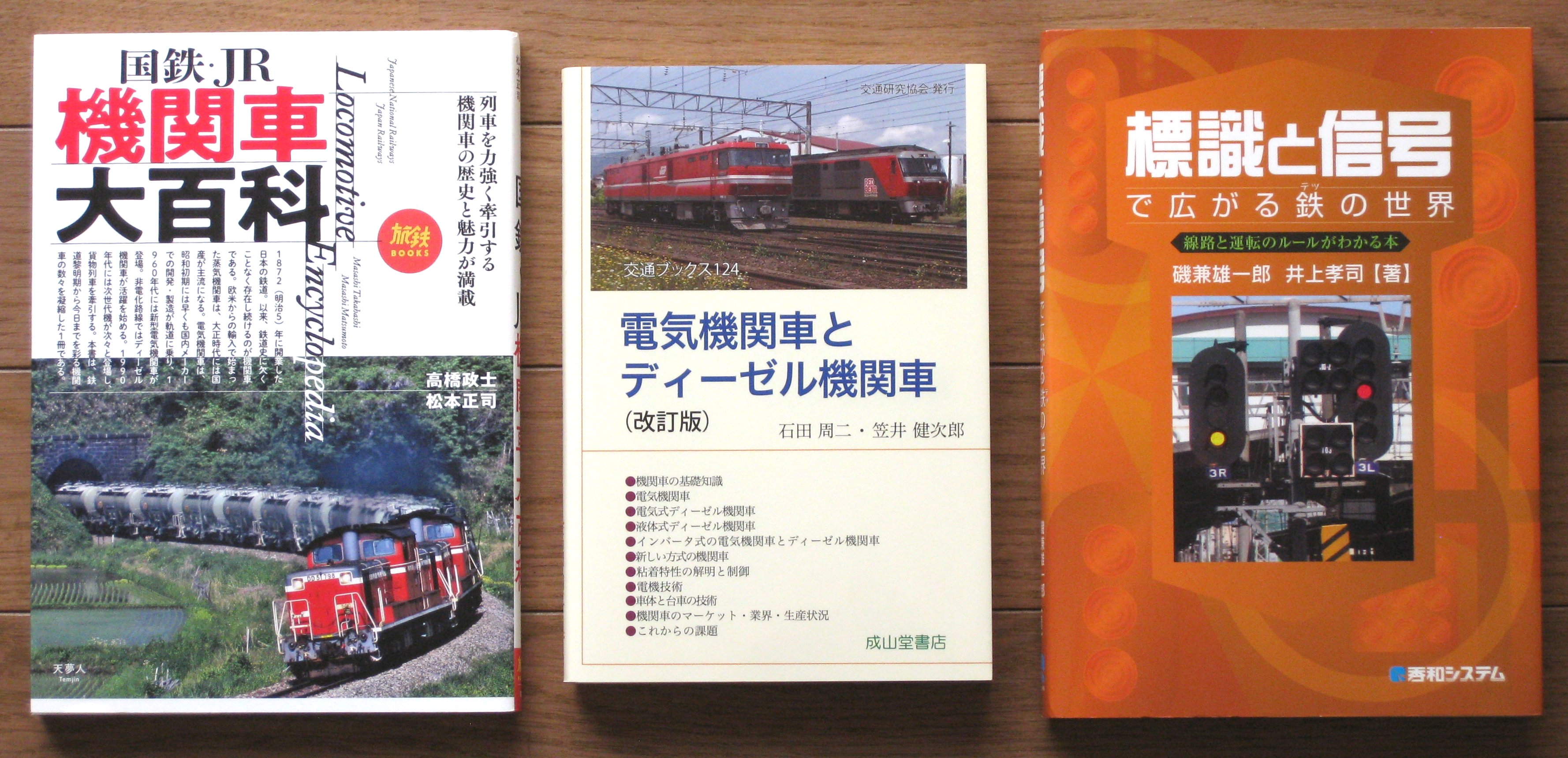「国鉄・JR機関車大百科」:カラー写真が多く読んでいて楽しいです。難点は各機関車の諸元表に数値の誤りが多すぎて資料として使えない点です。