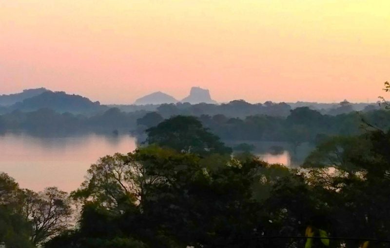 2015年にスリランカを訪れる機会がありました。会議の後に訪れた世界遺産「シギリヤロック」の印象を記します。現地に立つと、高温多湿なジャングルの緑の中に突如として聳え立つ巨岩の圧倒的な存在感に目を奪われました。岩肌が周囲の豊かな自然と不思議に調和し、ゆったりとした、どこか特別な空気が流れています。このような峻険な岩の頂に城を築いた王がいたという歴史には、ただ驚くばかりです。また、この時に宿泊したホテル「ヘリタンス・カンダラマ」も、環境に溶け込んだ独特の建築スタイルが印象的でした。スリランカが生んだトロピカル建築の巨匠、ジェフリー・バワの設計によるものです。建物の外観は、窓にへばりつくほどの濃い樹木や蔦に覆われ、客室に猿が入り込むので注意とありました。このホテルの窓辺から人工湖越しに眺める夕暮れ時のシギリヤロックは、まさに自然そのもので、忘れがたい光景となりました。
