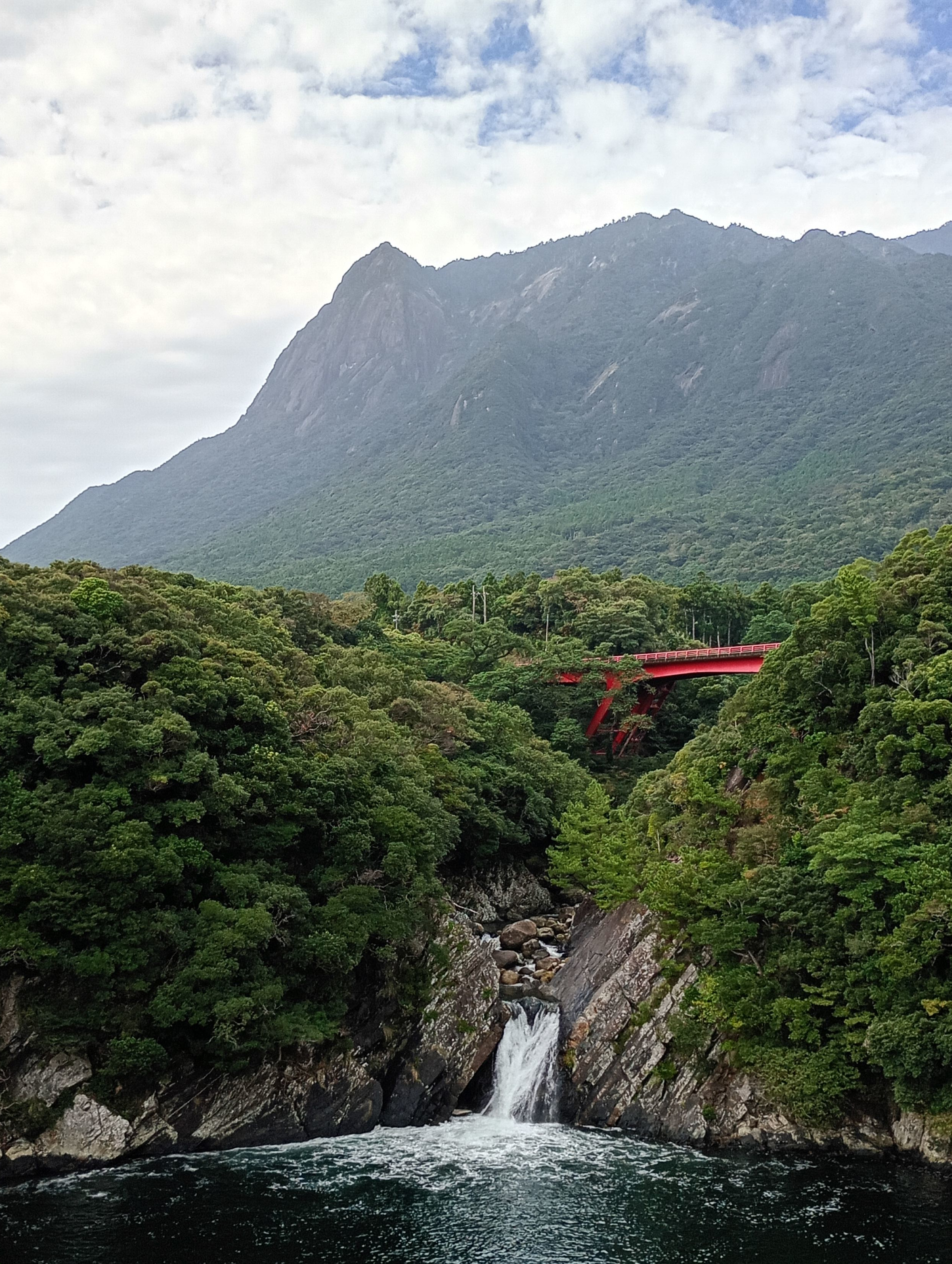 屋久島(世界自然遺産):昨年、行ってきました。レンタカーで島内をドライブ中、小学校の前の横断歩道に小学校低学年と思われる少年が立っていたのでストップ。対向車線のクルマも停まってその少年が渡り終わるのを待っていました。少年は横断歩道を渡り終わると、くるりと振り返り、対向車線のドライバーと私に向かって帽子を取ってペコリ、ペコリと丁寧にお辞儀をしてくれました。屋久島は自然だけでなく、人として大事なことも守り伝えてくれていると感じました。写真はトローキの滝です。